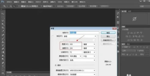 1.打开photoshop,新建一个宽400像素,高200像素的图片。