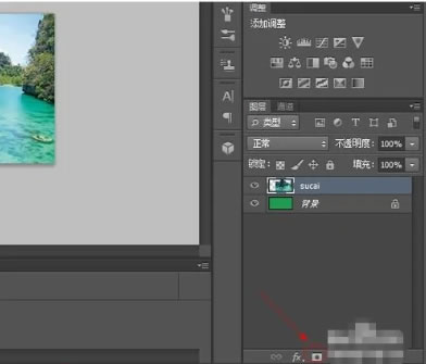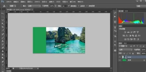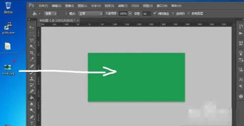 3.把风景素材图片从桌面上拖拽到绿色的背景区域。