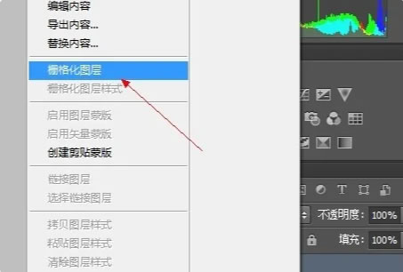6.在弹出的菜单里选择“栅格化图层”。
